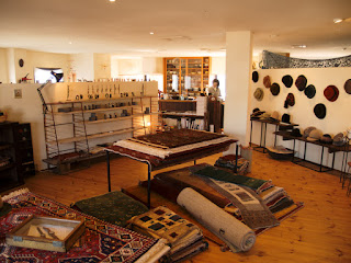 テーマは”手のしごと”でARKRAFTの時計とTinyKnotsさんのギャッベ、キリム、部族絨毯、廣西雅子さんの帽子が並んでいます。